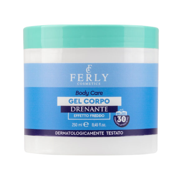 Il Gel Corpo Drenante Effetto Freddo della linea Ferly Cosmetics regala una piacevole sensazione di benessere e idratazione. La sua formulazione con effetto freddo allevia la stanchezza e lo stress fisico, lasciando la pelle fresca, drenata e rigenerata. Perfetto per un massaggio rilassante e per ritrovare energia dopo una lunga giornata.